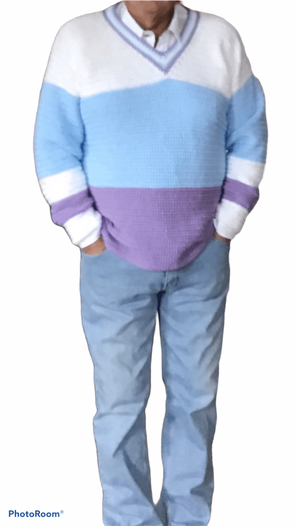 Heel eenvoudig patroon, goed geschikt voor beginners. Gebruikte steken: alleen lossen en vasten. Gemaakt met op Nld 5 met 2 bollen van elke kleur Royal van de Zeeman, maar Saskia van de Wibra of Medium van de Action zijn ook geschikt.