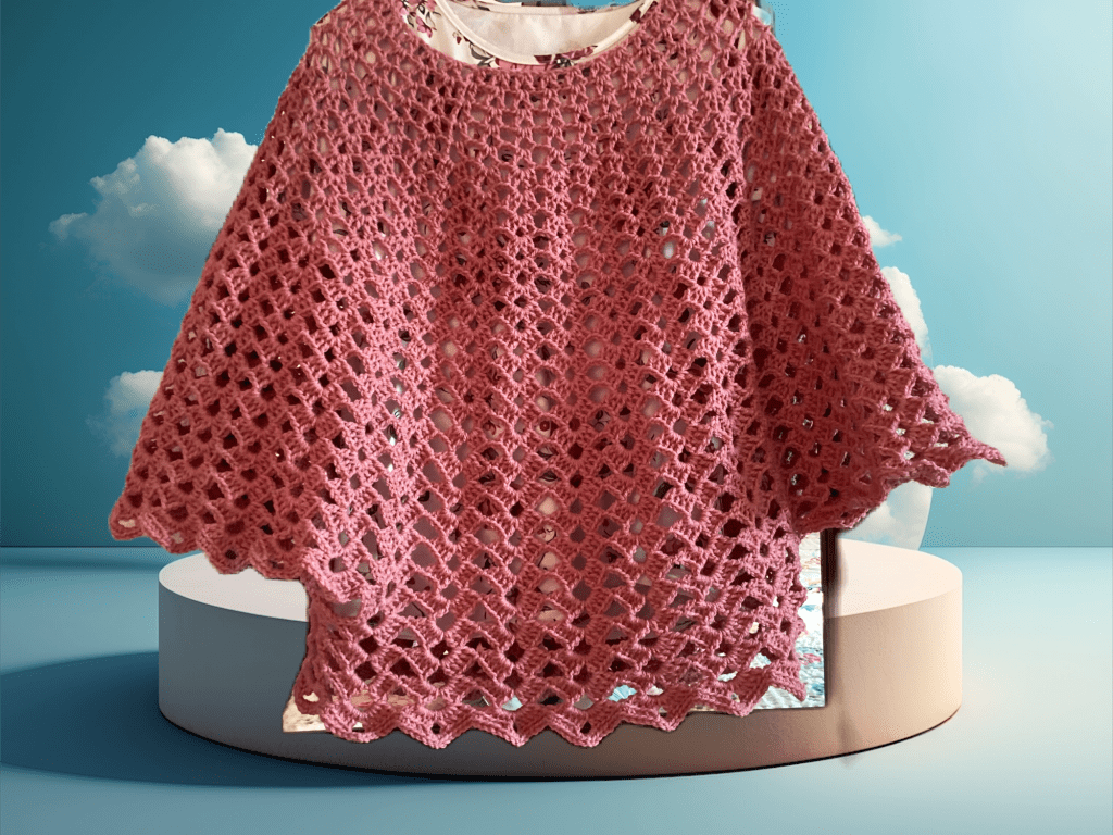 Top-down gehaakte poncho trui. Helemaal rondgehaakt, dus geen naden. Gehaakt met 1 hele en een klein beetje van de 2e bol Promo van de Zeeman op Nld 5.