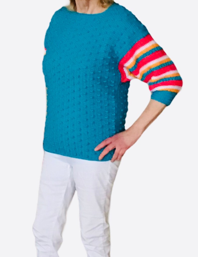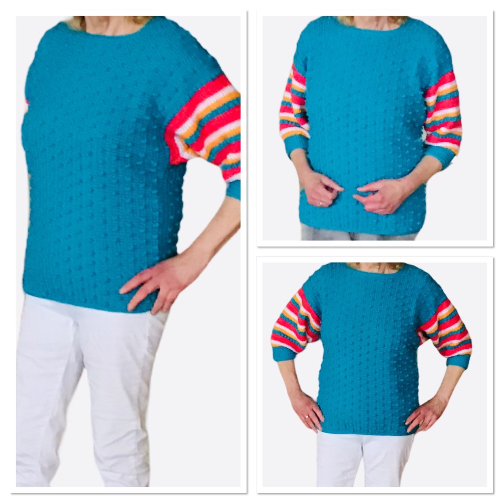 Gebruikte steken: lossen, vasten stokjes en noppensteek (wordt in het patroon beschreven).