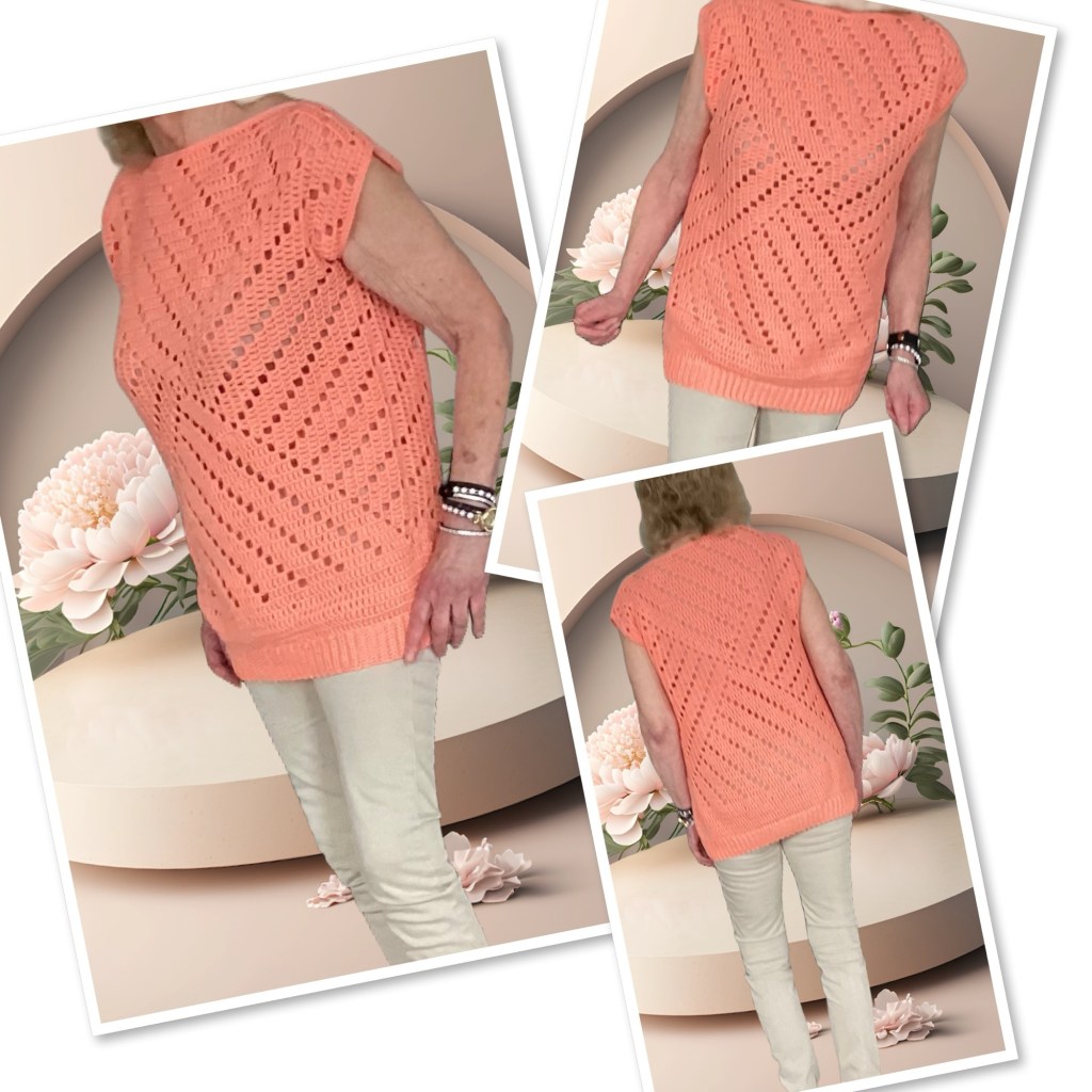 De maten zijn 36/38 40/42 44/46 48/50 52/54. Breedte op de rug ca 50 54 58 62 66 cm. Lengte ca 62 64 66 68 70 cm.