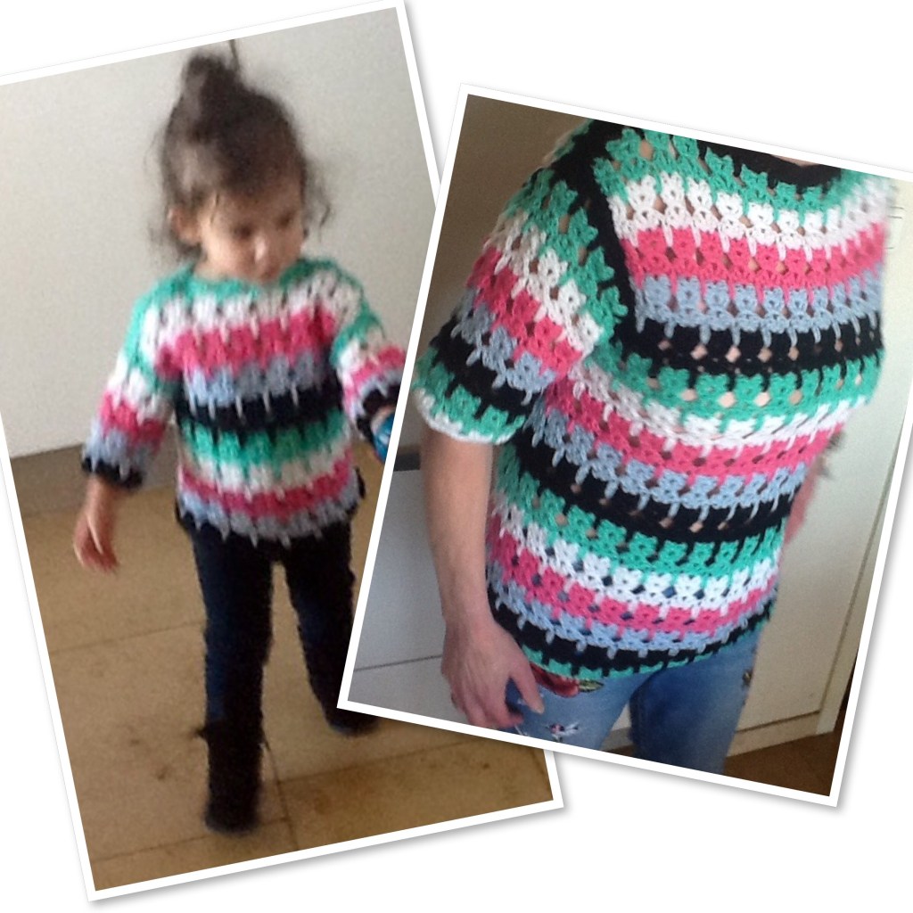 ZOVEEL RESTJES OVER? Haak een kattentrui voor jezelf, je dochtertje of kleindochter. Eenvoudig patroon, bestaat uit 4 rechte lappen. Maten 36/46 en 86/116.