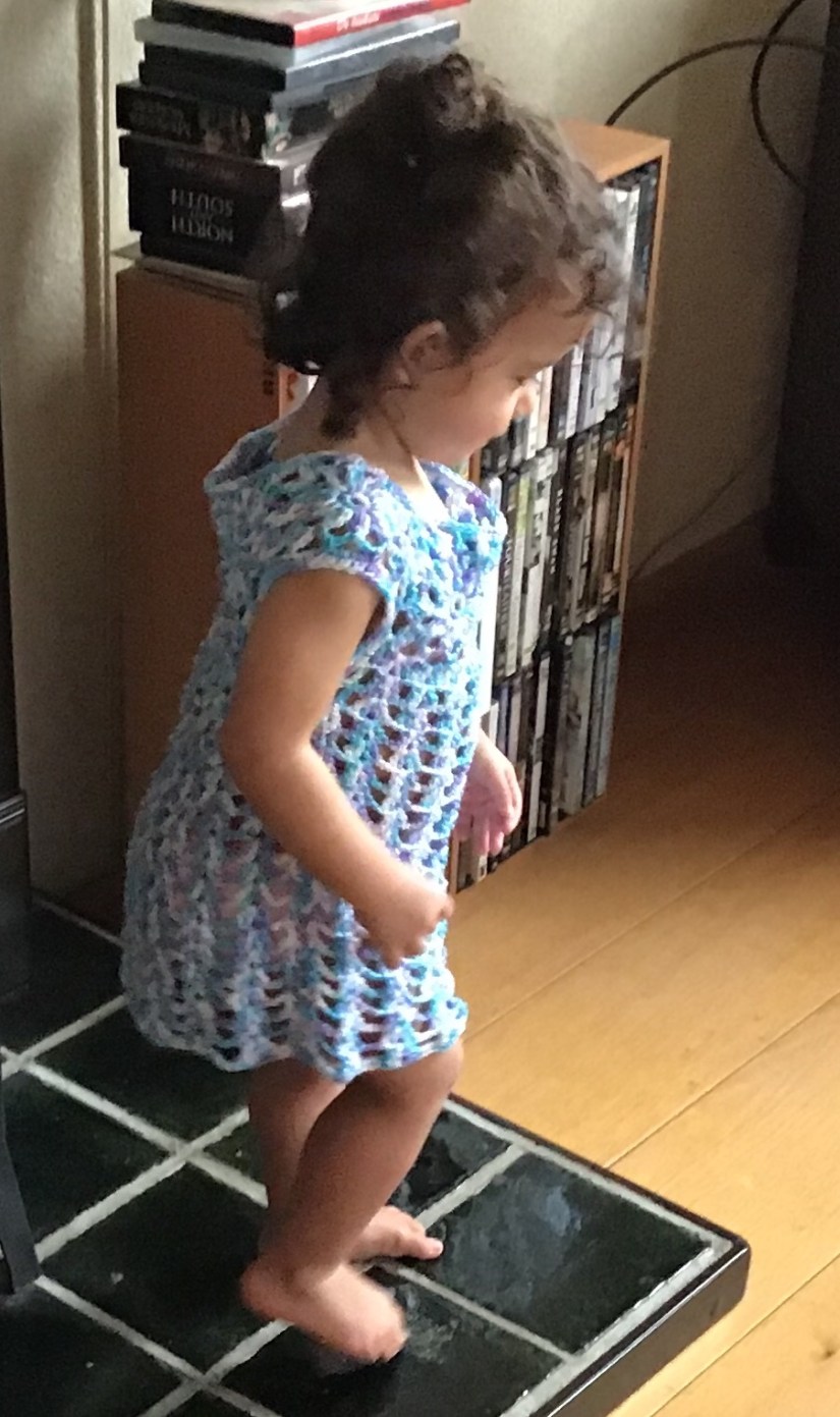 Leuk makkelijk te haken (strand)tuniekje voor meisjes. Maten 86/104. Grotere maten op aanvraag.