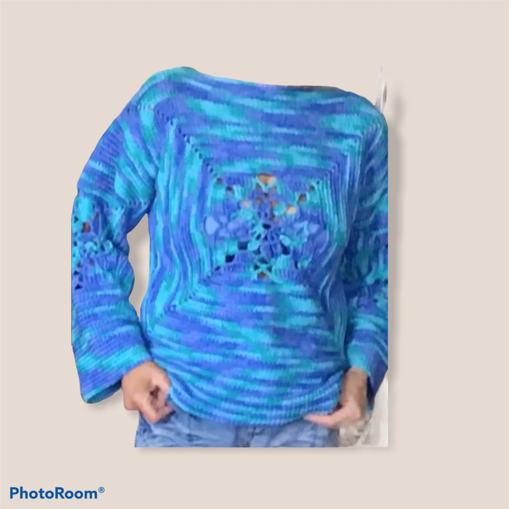 Mooie wintertrui gehaakt op Nld 5 met 5 bollen Sanne van de Wibra, maar kunt ook heel goed Bianca van de Wibra gebruiken. . De basis is 4 vierkanten. Het diagram staat in het patroon, met instructiefoto’s en uitgeschreven toeren. Verder gewoon rondhaken in vasten.