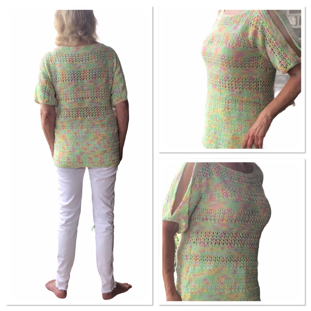 Gebruikte steken: * lossen * vasten * v-steek. Wordt in het patroon beschreven.