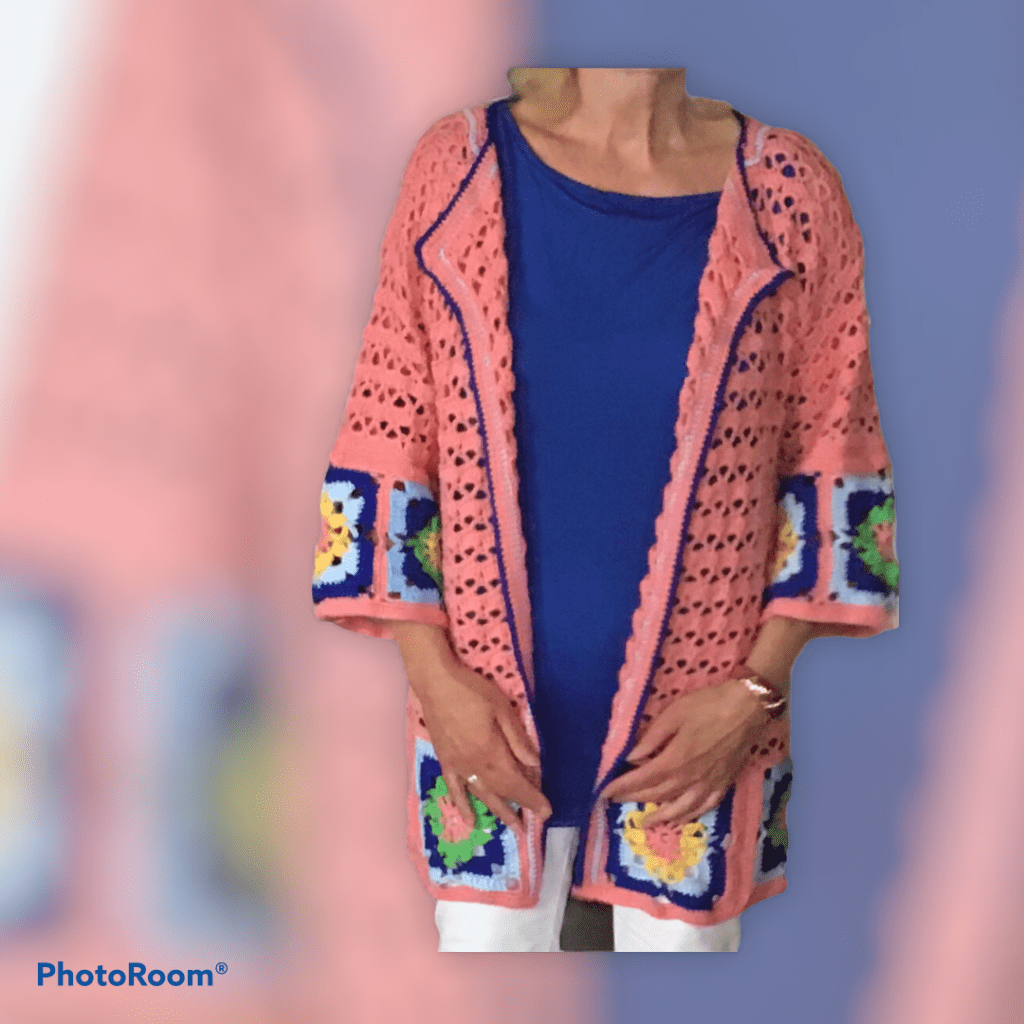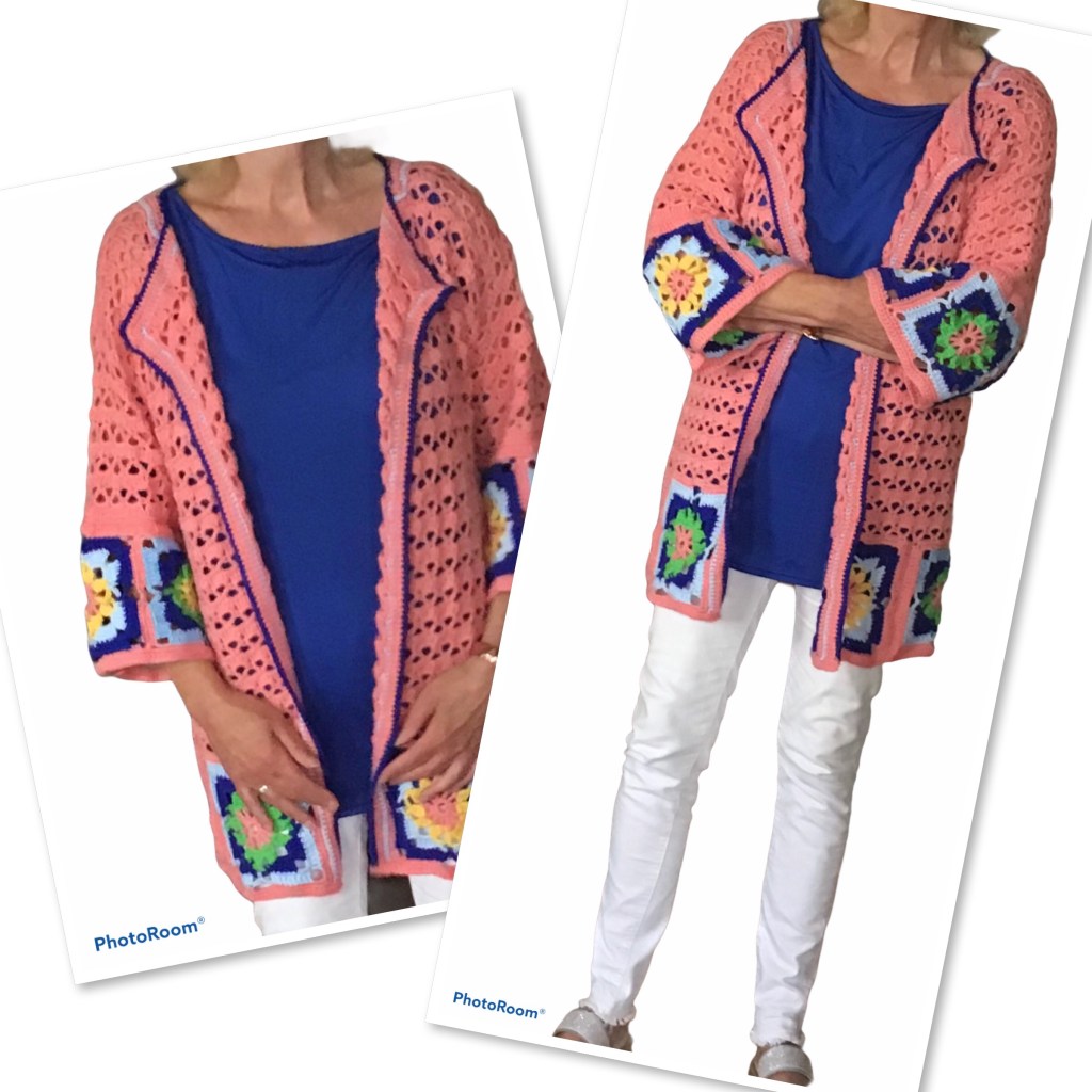 De basis is vierkantjes, diagram is aanwezig in het patroon, per toer uitgeschreven en instructiefoto’s. Daarna is het recht toe recht aan in een leuke, makkelijke steek, ook beschreven. Het vest wordt aan 1 stuk gehaakt tot de armsgaten.