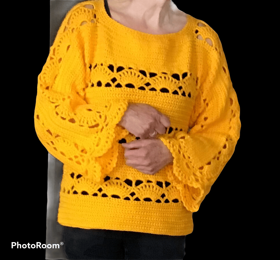 Gebruikte steken: * lossen * vasten * stokjes * waaierpatroon (wordt goed uitgelegd in het patroon)