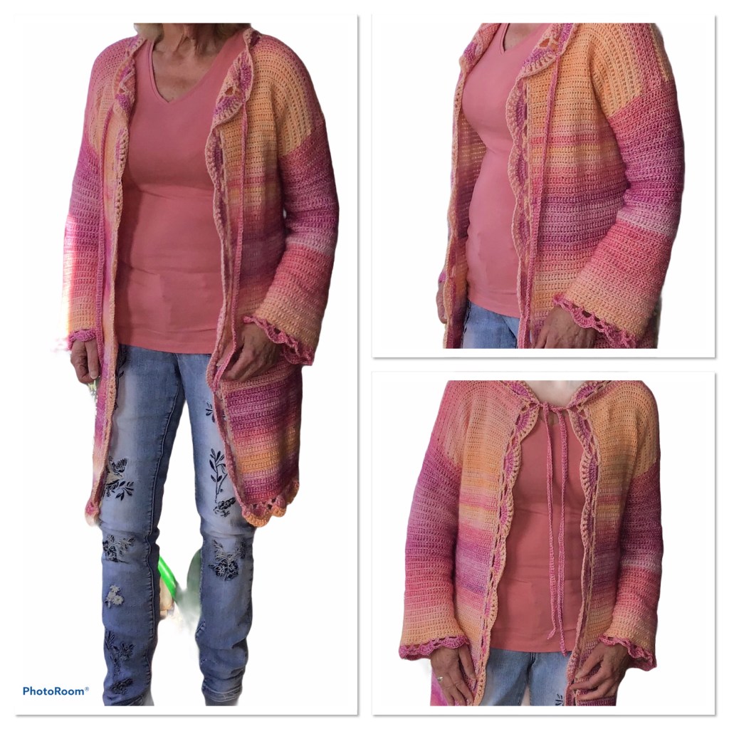 De maten zijn 36/38 40/42 44/46 48/50 52/54. Breedte op de rug: 50 54 58 62 66 cm. De lengte is 80 83 86 89 89 cm. Of gewenste lengte.