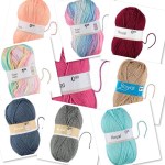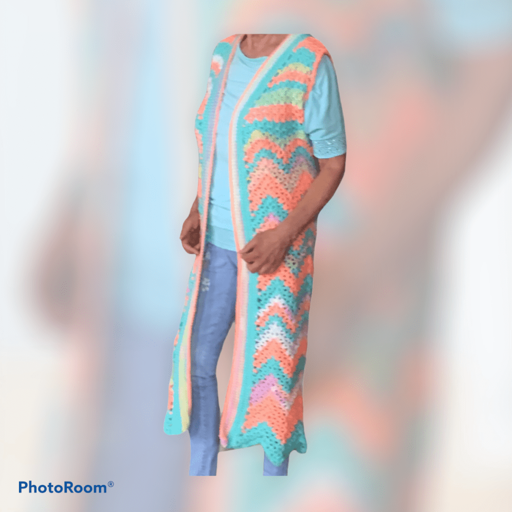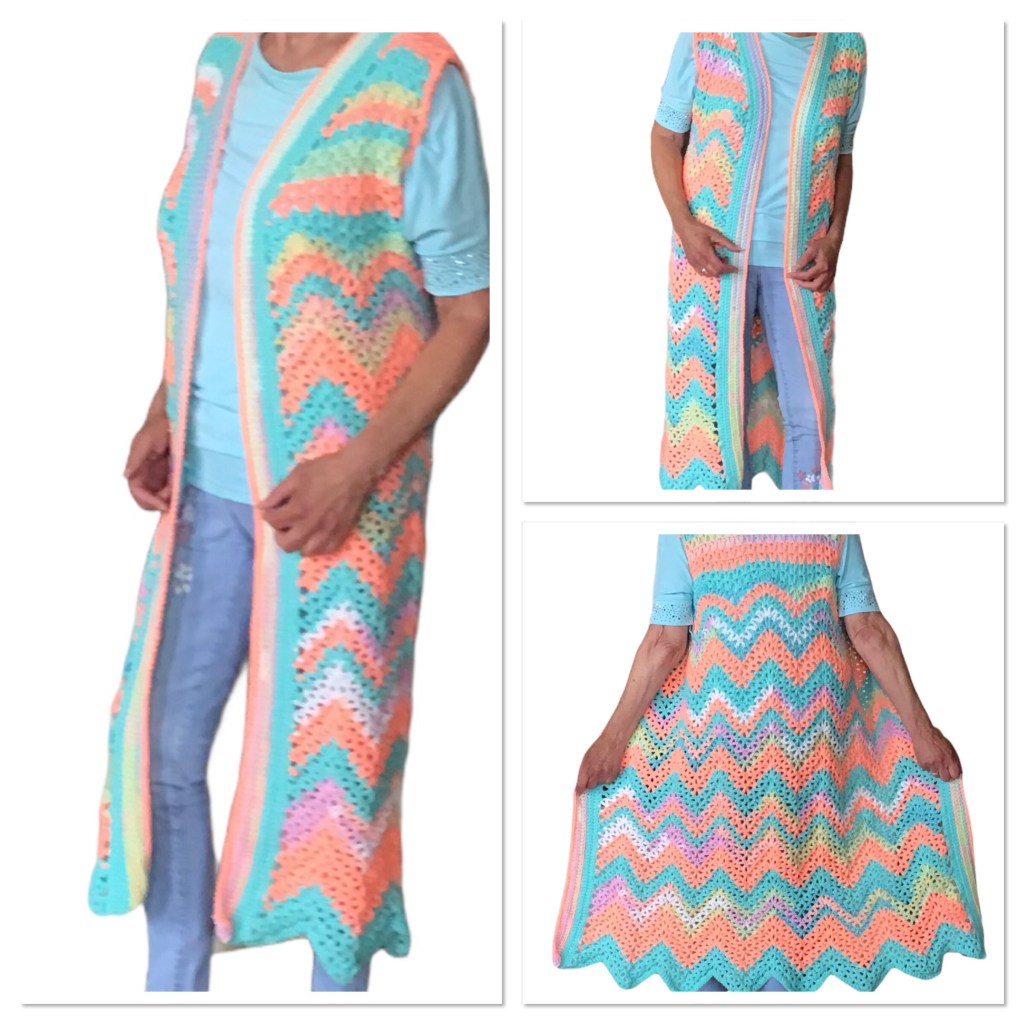Ik heb dit vest gehaakt met gewone Royal en Royal Batik van de Zeeman op Nld 5. Van elke kleur 2 bollen, 6 bollen dus. Voor de grootste maten misschien een bol extra inslaan. Hoe je de strepen indeelt kun je zelf bepalen, of de strepen van de foto volgen.