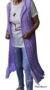 De maten zijn 36/38, 40/42, 44/46, 48/50, 52/54. Aanwijzingen staan altijd in deze volgorde. Breedte op de rug ca. 50 54 58 62 66 cm. Lengte kun je zelf bepalen.