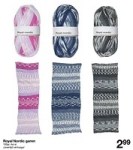Ik heb dit vest gehaakt met 8 bollen Royal,Batik van de Zeeman op Nld 4,5. Dit is voldoende voor alle maten, bij de kleinere maten hou je een flinke rest over. Je kunt met elk kort verloopgaren geschikt voor Nld 4,5 haken. Zeeman heeft een nieuw garen: Royal Nordic. Lijkt precies op Royal Batik. Voor de manchetten en kraagje heb ik een flinke rest gebruikt. Natuurlijk kun je ook met aparte kleuren werken en zelf strepen maken, of: effen. Omdat er een patroontje in zit kan dat ook heel mooi zijn.