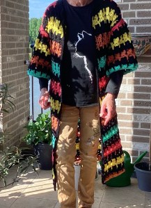 Mooi lang vest met veel kleuren en patroontjes, voor de echte liefhebbers. Maar …. Ook voor beginners. Hoe dan? Bij het patroon staat ook een eenvoudige versie, net zo mooi, maar makkelijker om te maken. Ik heb gewerkt met garen van de Zeeman (Royal) en de Action (Medium) op Nld 4,5.