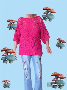 Gebruikte steken: rechte Southbay steek,V-steek en kreeftensteek. Uitleg staat in het patroon.