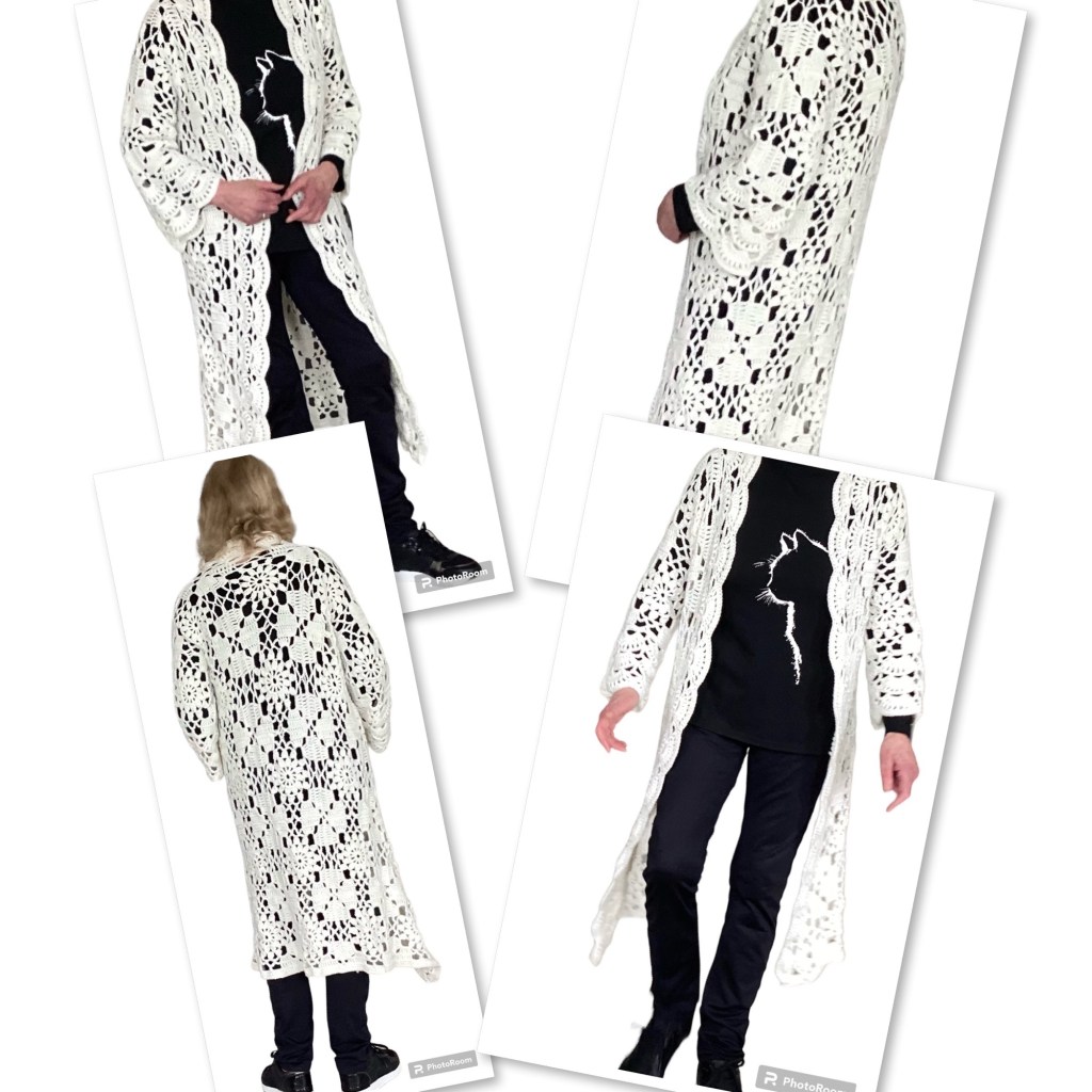 Ik heb dit vest gehaakt met 5 bollen Royal van de Zeeman op Nld 4,5. Vanaf maat 44 zou ik 6 bollen nemen. Het vest bestaat helemaal uit vierkantjes.