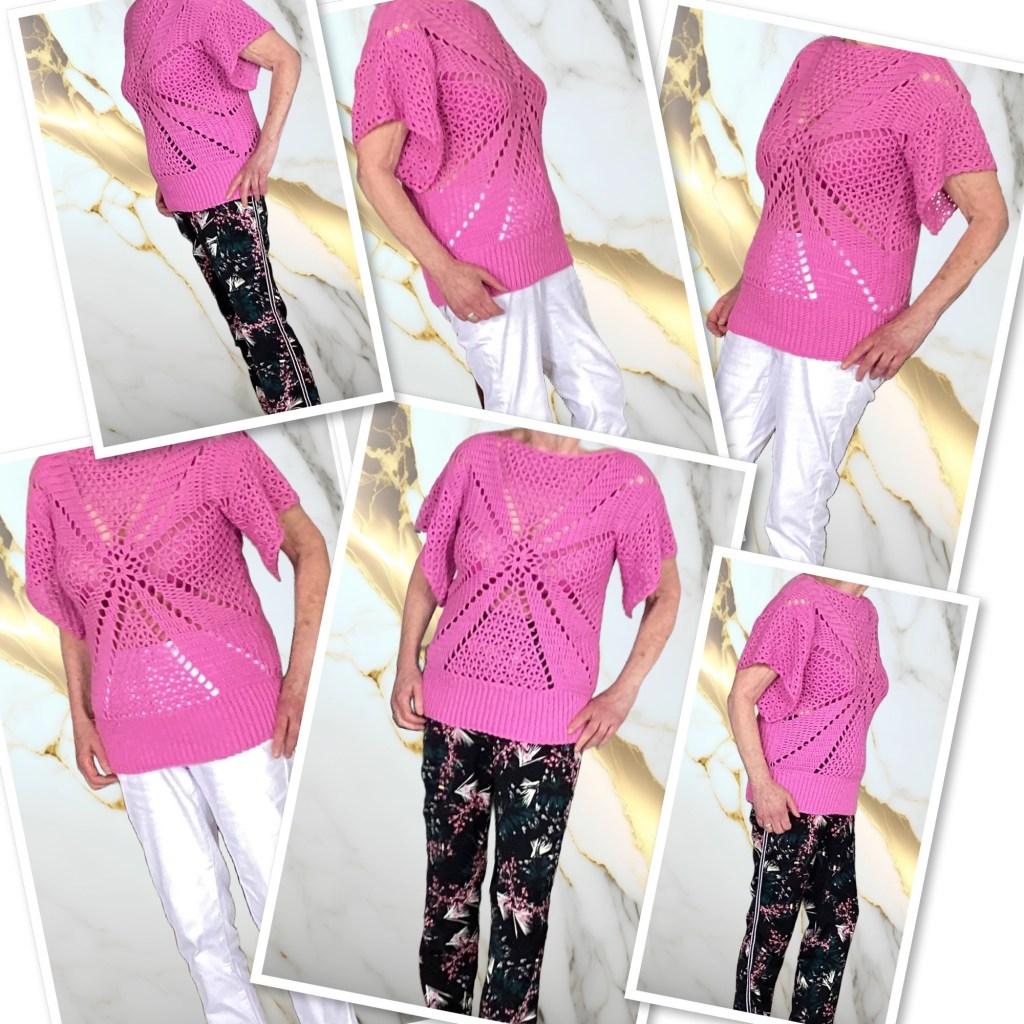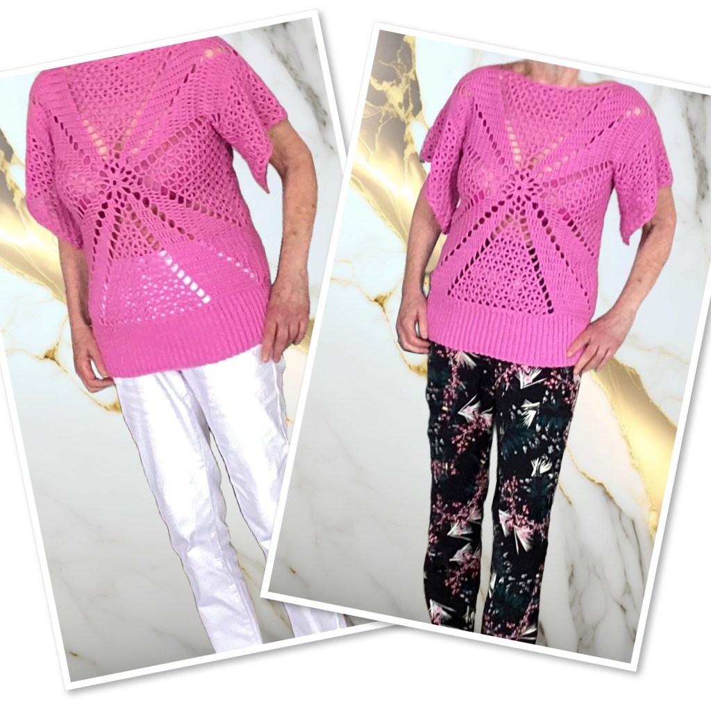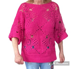 Ik heb gehaakt met 5 bollen Evi van de Wibra op Nld 3,5. Het garen lijkt sprekend op Supersoft van de Zeeman. Vanaf maat 44 zou ik 6 bollen nemen.
