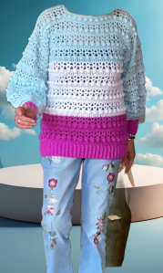 Een kleurig truitje, met als basis grannies gemaakt met verloopgaren op Nld 4. Maximale kleuren, minimale draadjes wegwerken. Natuurlijk kun je het ook met effen grannies maken. Deze grannies zijn gehaakt met verloopgaren dat ik op marktplaats heb overgenomen.