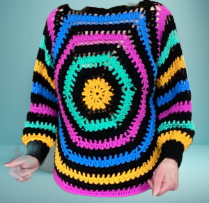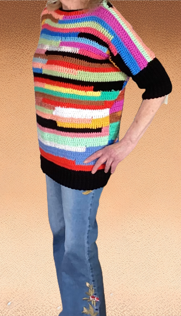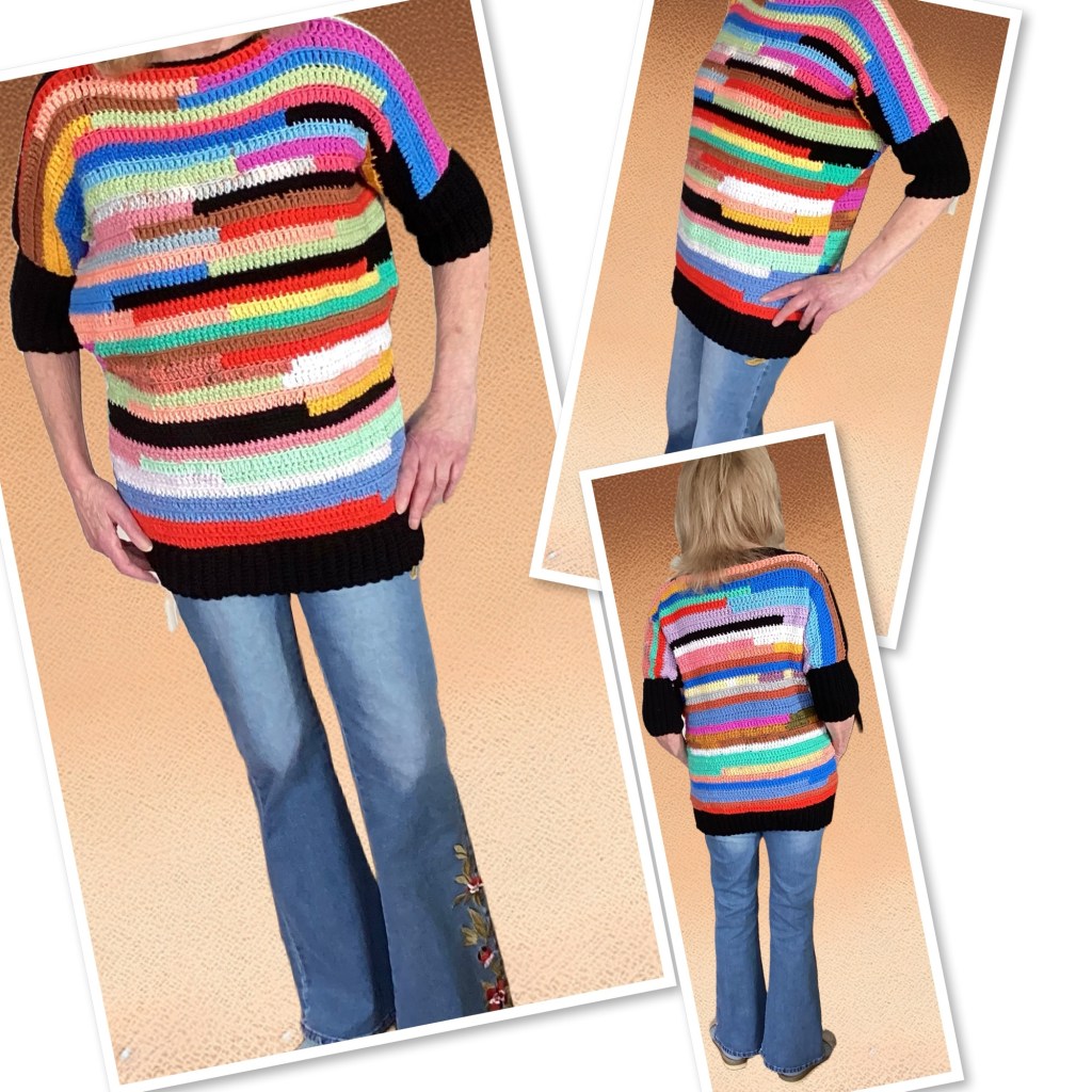 VOOR DE DURVERS! Helemaal gehaakt op Nld 5 met een bol zwart en heel veel kleine bolletjes. Ideaal om van je restjes af te komen. Geen zorgen over de draadjes, die worden heel slim meegehaakt.