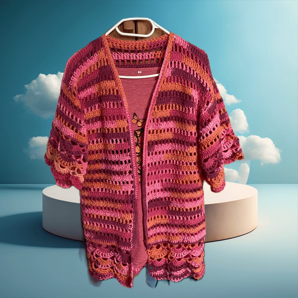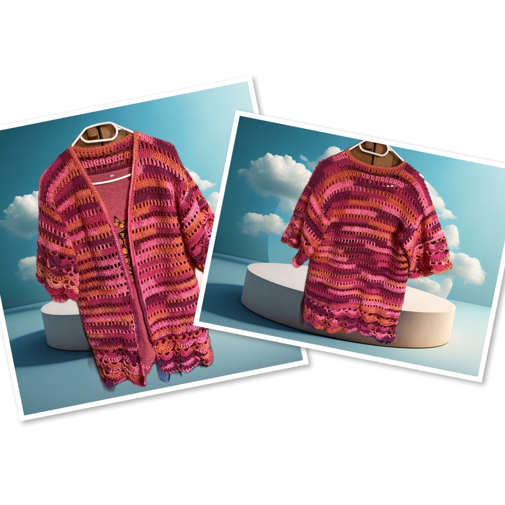 Ik heb dit vest gehaakt met 5 bollen Lola van de Wibra op Nld 4,5. Je kunt ook werken met gewone Saskia Lurex van de Wibra, of Acrylgaren van de Action. De maten zijn 36/38 40/42 44/46 48/50 52/54.