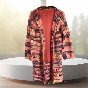 Dit vestje is gehaakt met 4 bollen Lola van de Wibra op Nld 4,5. Ik hield een hele grote rest over. Je kunt natuurlijk ook haken met elk ander garen geschikt voor Nld 4,5/5. Hou wel rekening met de meters. Lola is 240 m.