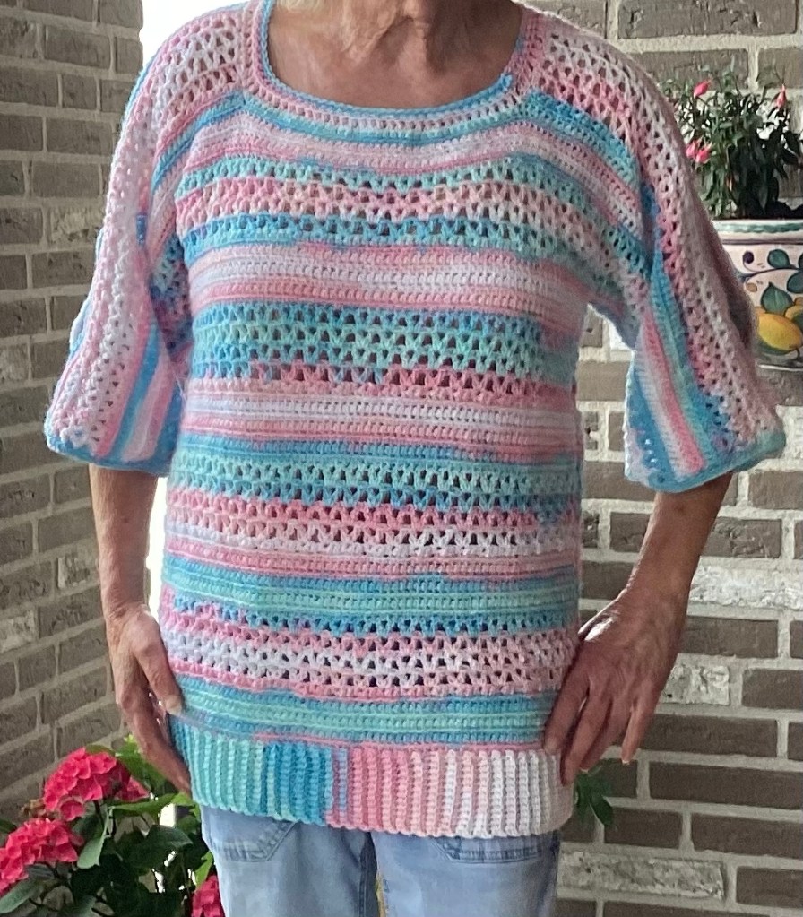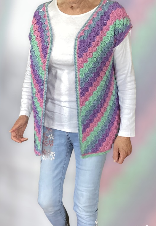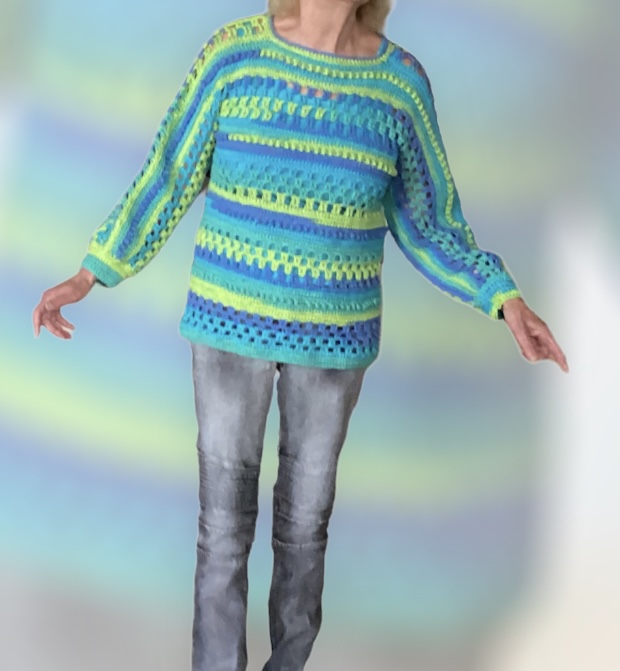 Het is erg leuk om met verloopgaren te werken. Je krijgt een heel kleurig geheel, maar je hoeft geen honderden draadjes af te hechten.