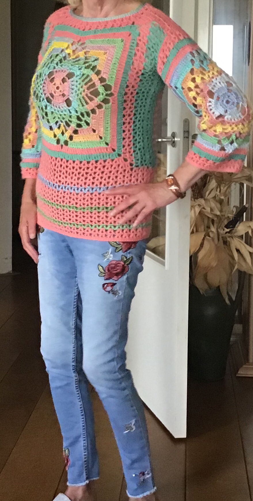 Mooie kleurige vesten voor het najaar. Eenvoudig patroon, alleen vierkantjes en vasten haken. Ook goed te doen voor beginners. Gehaakt op Nld 5 met Royal van de Zeeman, maar ook Saskia van de Wibra en Medium van de Action zijn goed geschikt. Je kunt deze merken ook door elkaar gebruiken.