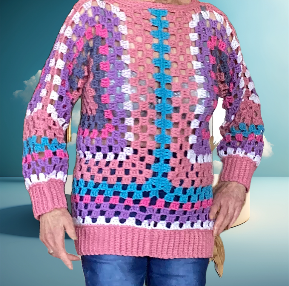 Om een patroon te maken moet ik altijd een proefmodel haken, ook voor de foto’s. Ik kan ze onmogelijk allemaal zelf dragen. Ook mijn kleindochter is ruim voorzien. Daarom verkoop ik wat ik over heb. De damesmodellen zijn maat 38, bij de kinderkleding staat de maat erbij.